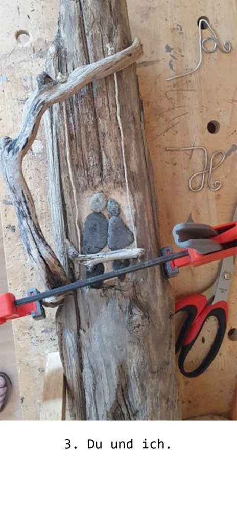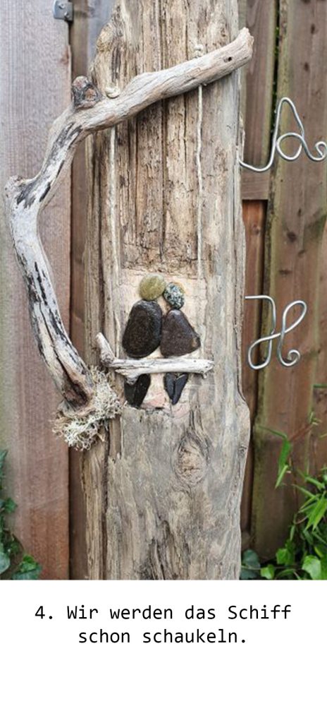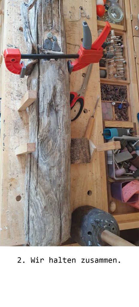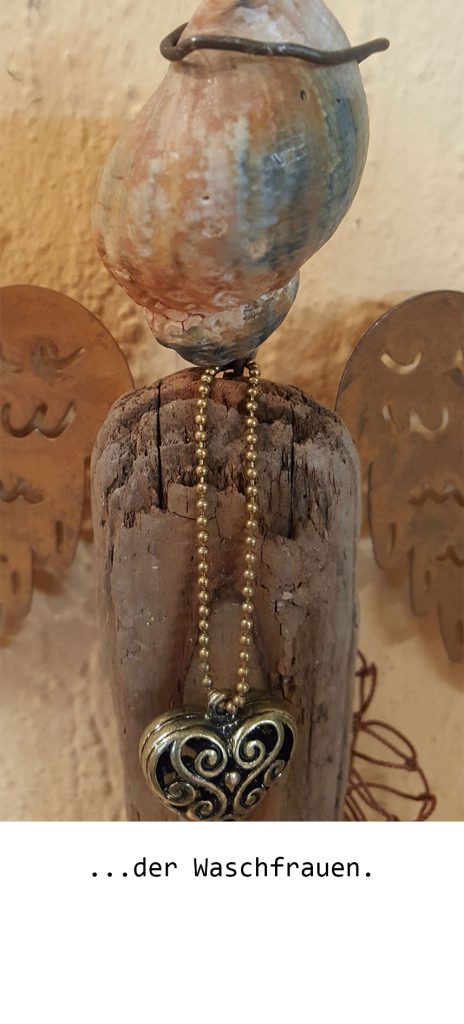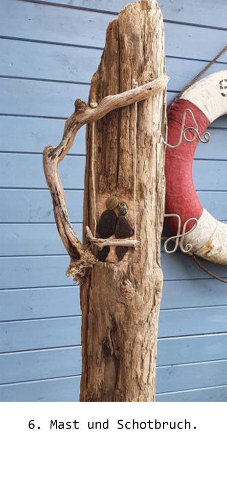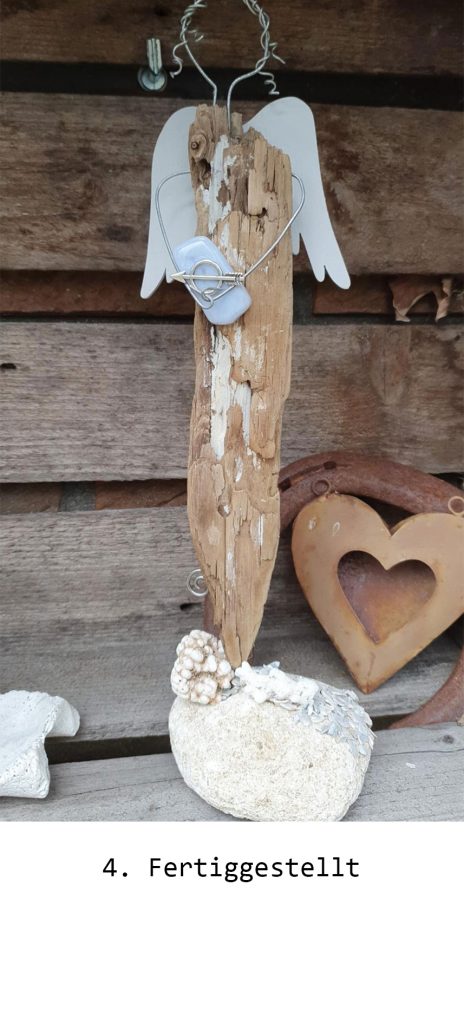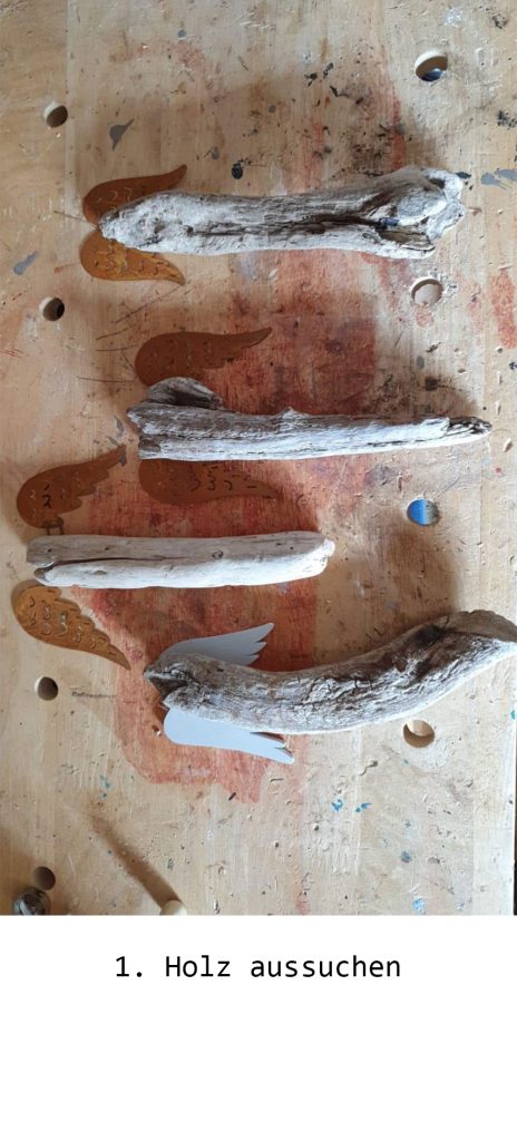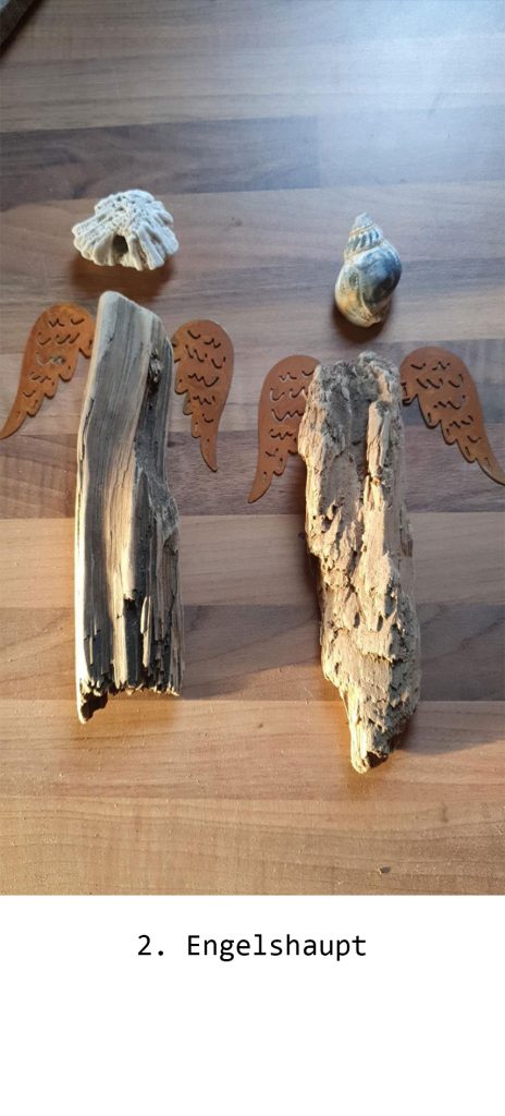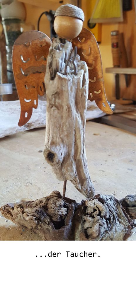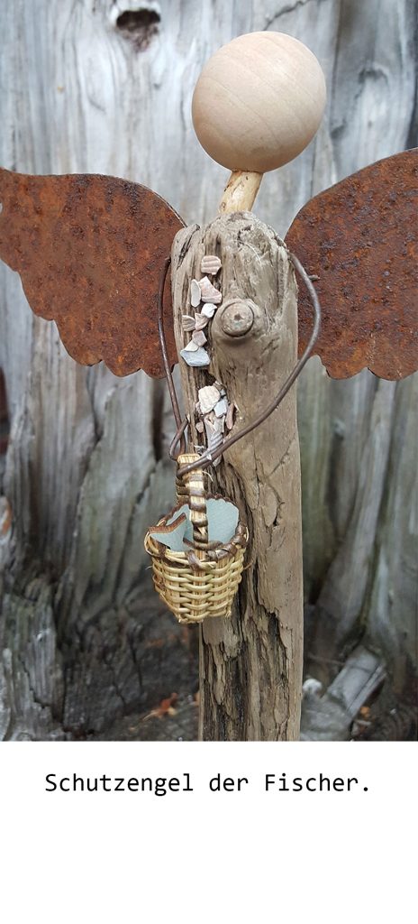 Es beginnt mit der Suche nach dem richtigen Holzstück, eines Beschützers würdig. Das Holz findet die Flügel. Danach ein besonderes Haupt und etwas Stabiles, was dem Sturm der Meere trotzt. Zum Schluss erhält der Engel einen Glücksbringer mit auf den Weg.